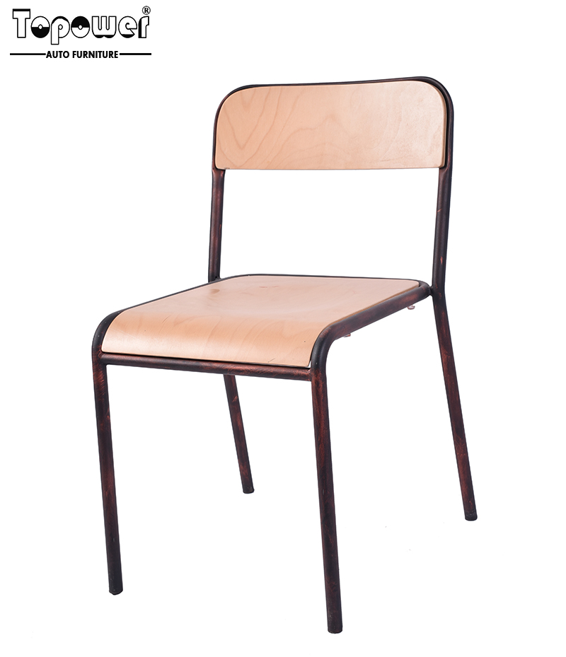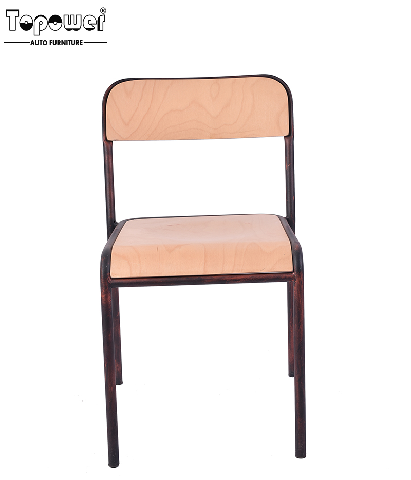 Vintage Stainless cafe al aire libre de madera sillas de metal silla de jardin apilable silla de metal
